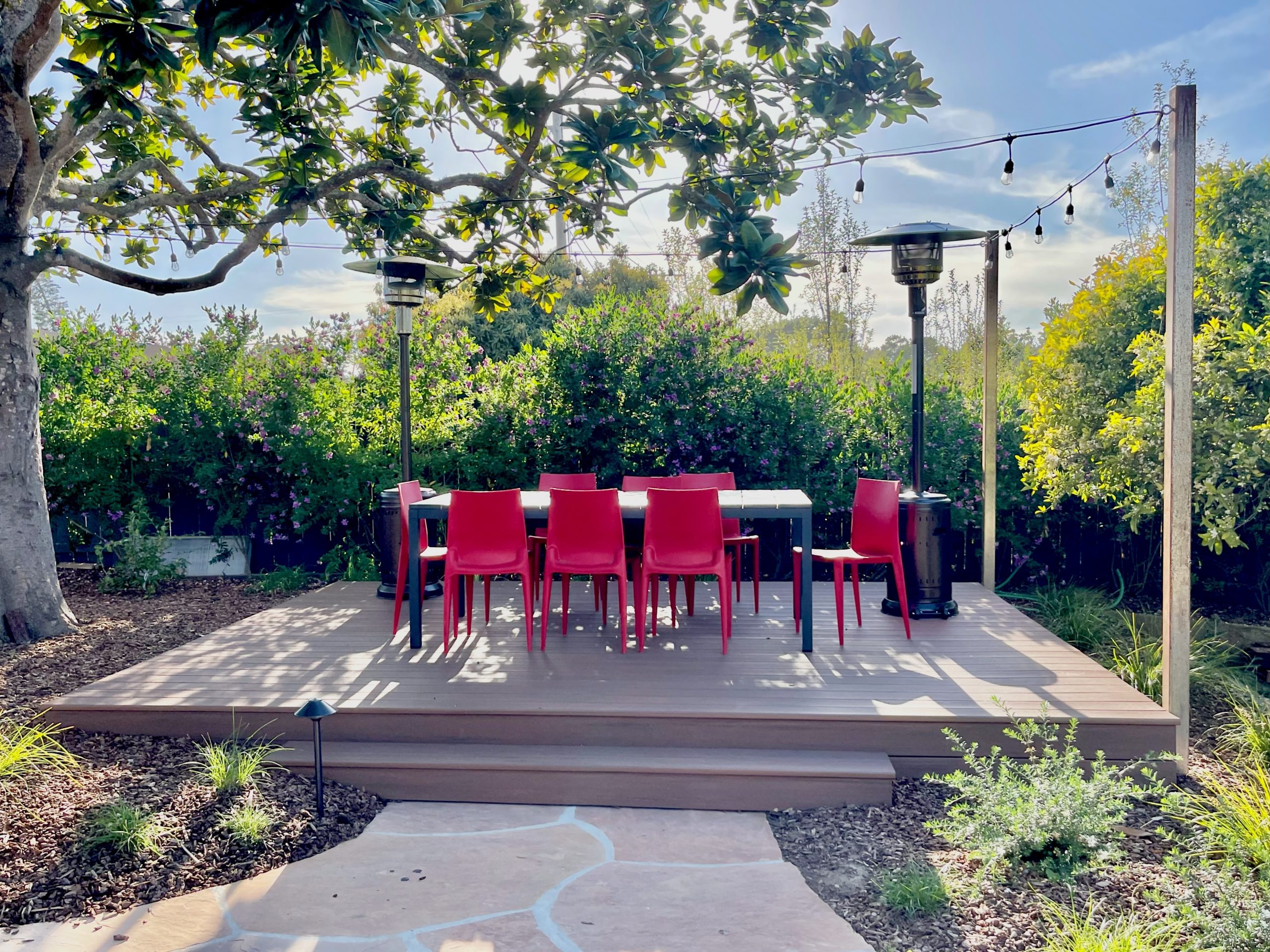 Oftentimes, there is no substitute for a deck- smooth, clean and cool underfoot, a deck provides outdoor living spaces for dining, resting around a jacuzzi or cold plunge, for yoga, or any mix you can think of. We are knowledgeable and can guide you about the benefits and fire ratings of a range of materials available.