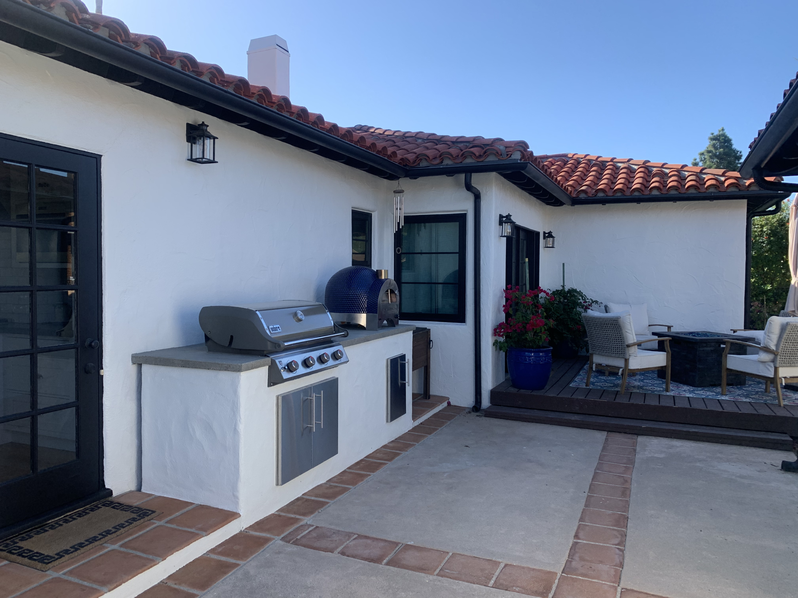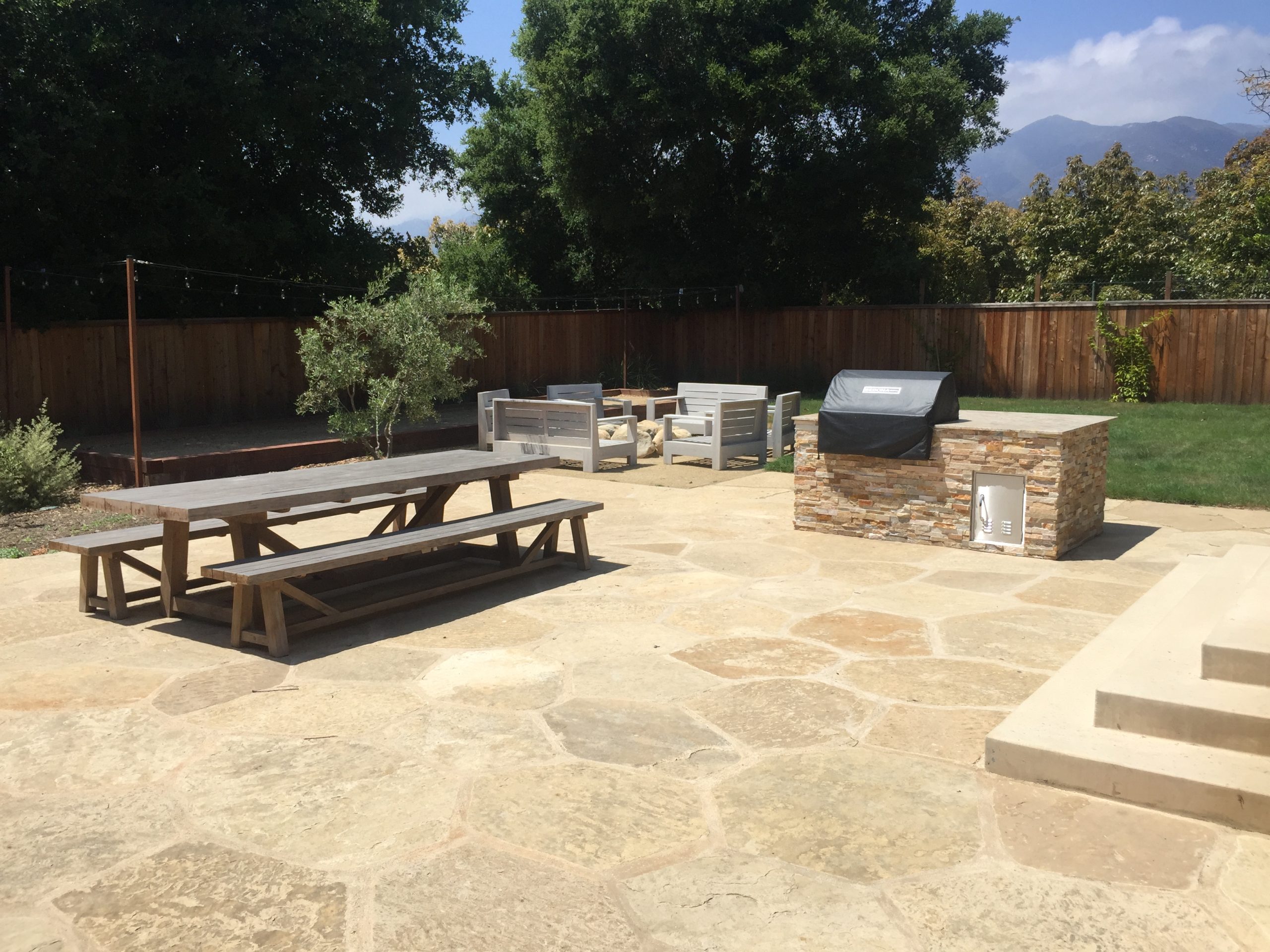 An outdoor kitchen may consist of a grill and counter space integrated into an overall hardscape plan, creating a cohesive outdoor space. Or, an outdoor kitchen can transform a backyard into a true extension of the home, inviting family and friends to gather, cook, and celebrate together in the open air. With everything at hand—grill, counter space, sink, fridge, or even pizza oven, it makes dining an experience and creates an unforgettable space for entertaining in our wonderful Santa Barbara climate.