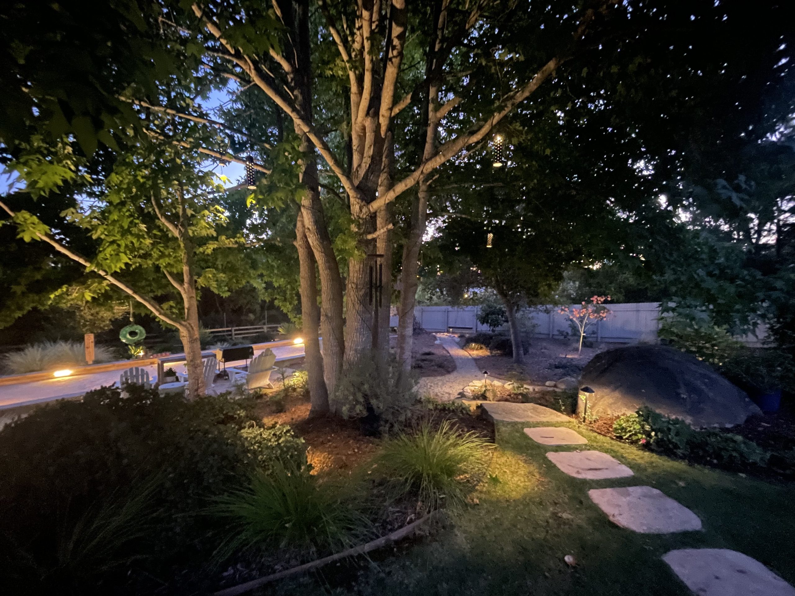 Landscape lighting brings a new dimension to the garden —making the garden glow, guiding the eye, and welcoming people into your outdoor spaces long after sunset. And, in our mild Santa Barbara climate, the shorter daylight hours of fall and winter are not a limitation when lighting illuminates patios, walkways, and outdoor spaces. Lighting improves visibility, making the garden safer for movement at night.